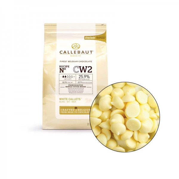 Белый шоколад используется в различных десертах в качестве ингредиента, украшения или основы. Из него можно сделать корпус конфеты или плитку шоколада, яркий декор для тортов и пирожных, а также добавить его в крем или ганаш. Небольшие капли-каллеты легко плавятся и образуют однородную массу, с которой легко и приятно работать.